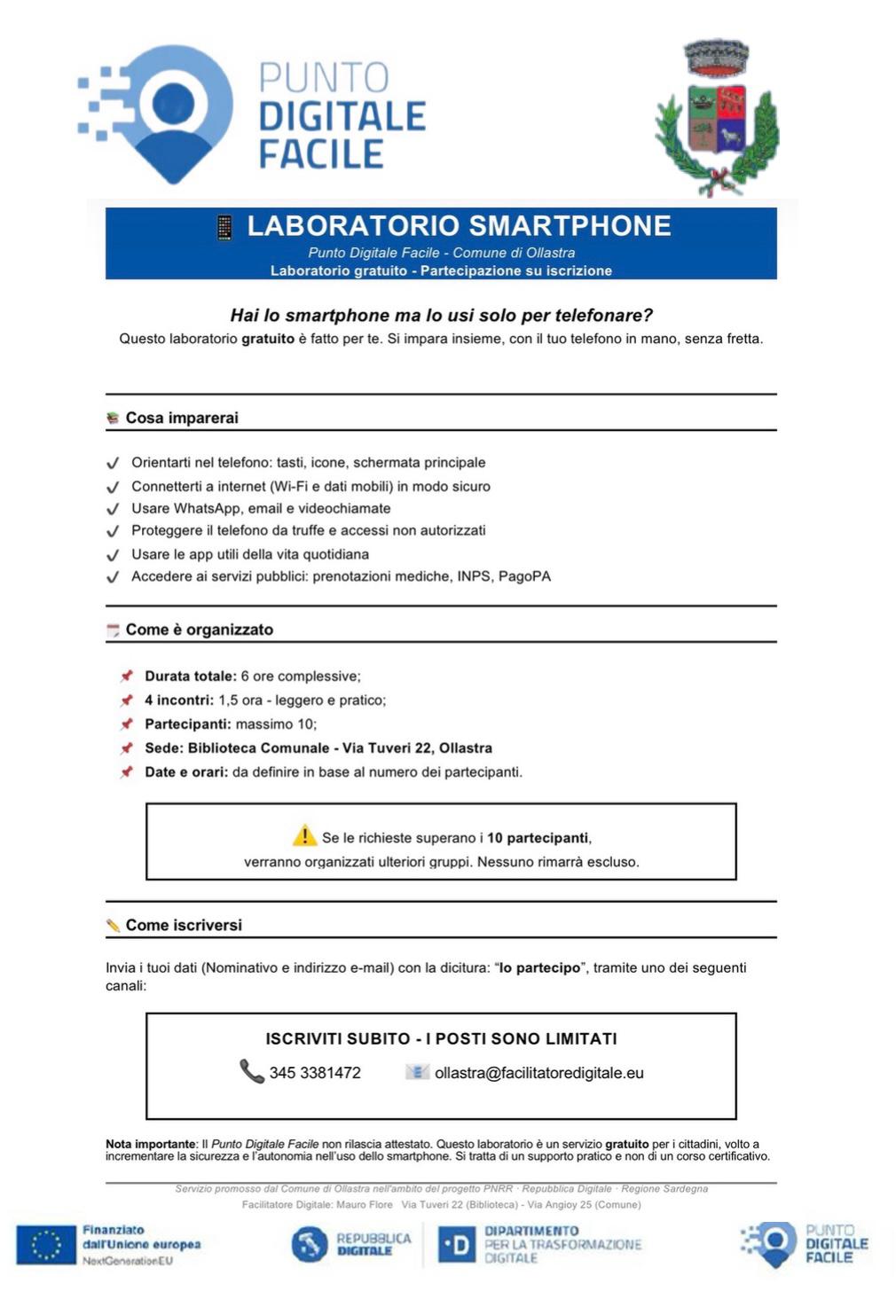 Il Punto digitale facile del Comune di Ollastra organizza un breve laboratorio per chi vuole imparare e approfondire l’uso corretto e responsabile del cellulare